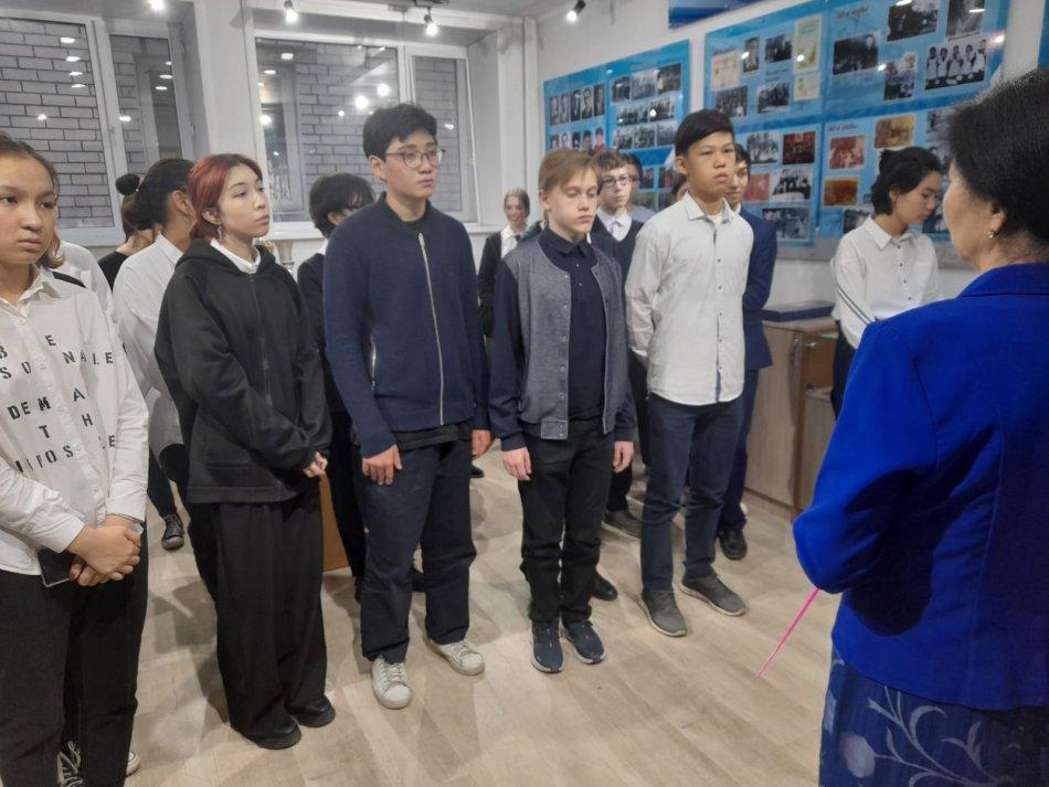 Сегодня в школьном краеведческом музее для учащихся 8, 9 классов прошли экскурсии, посвященные Дню Победы. Экускурсии провела руководитель музея Курмангалиева Рамзия Галиакбаровна. Краеведческий музей КГУ "Гимназия № 6 г. Семей" имеет богатую историю. Он был создан по инициативе Героя Советского Союза Силина Николая Николаевича еще в 70-е годы как музей Боевой Славы 8 стрелковой Ямпольской дивизии. Затем, в начале 90-х, весь богатейший собранный материал был передан в ЦДНИ. Во вновь возникшем музее существует раздел, рассказывающий о героях Великой Отечественной войны, наших бывших учениках и земляках, на чьём примере воспитывалось не одно поколение учащихся гимназии.