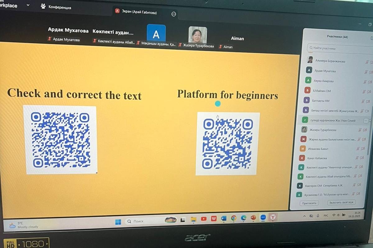 Вебинар ынтымақтастық пен ашық диалог атмосферасында өтті, бұл әрбір қатысушыға жаңа идеялар мен болашақ жұмысы үшін пайдалы ұсыныстар алуға мүмкіндік берді.Областной инновационно-методический центр Управления образования области Абай на базе КГУ «Гимназии №6 города Семей» проводил 19 ноября 2025 года областной вебинар на тему «Развитие критического мышления через обучение английскому языку». Вебинар подготовили и провели учителя английского языка КГУ «Гимназия №6 города Семей»: Арстамбаева Алмагуль Максутовна, Сергачева Ольга Геннадьевна, Габитова Арай Дюсеновна, Амерханова Тахмина Асылбековна, Искакова Динара Мухтаровна. Цель вебинара - показать педагогам, как эффективно интегрировать стратегии критического мышления в процесс обучения английскому языку. В ходе вебинара учителя активно делились своим профессиональным опытом, обсуждали эффективные методы преподавания и обменивались практическими примерами из собственной педагогической деятельности. Учителя показали, что с помощью заданий на анализ, сравнение, аргументацию и творческое решение проблем можно формировать у учащихся навыки критического мышления, одновременно развивая их языковую компетенцию. Вебинар прошёл в атмосфере сотрудничества и открытого диалога, что позволило каждому участнику получить новые идеи и полезные рекомендации для дальнейшей работы.