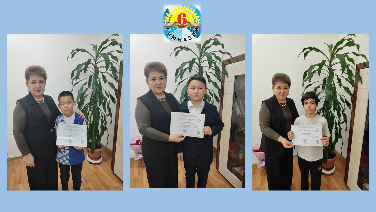 Поздравляем наших гимназистов: Сәрсембі Диаса, Серік Арғынбая, Сеилханова Акмаля - с занятым 3 местом в областном этапе конкурса научных проектов "Зерде". Благодарим за подготовку учеников педагога-модератора Асқарова Данияра Мейренбайұлы и педагога-исследователя Малышкину Татьяну Юрьевну.