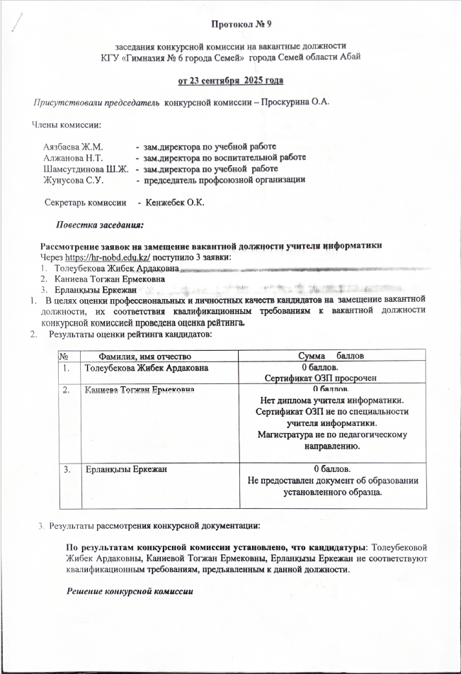 Протоколы итоги конкурсов учителей » КГУ «Гимназия № 6»