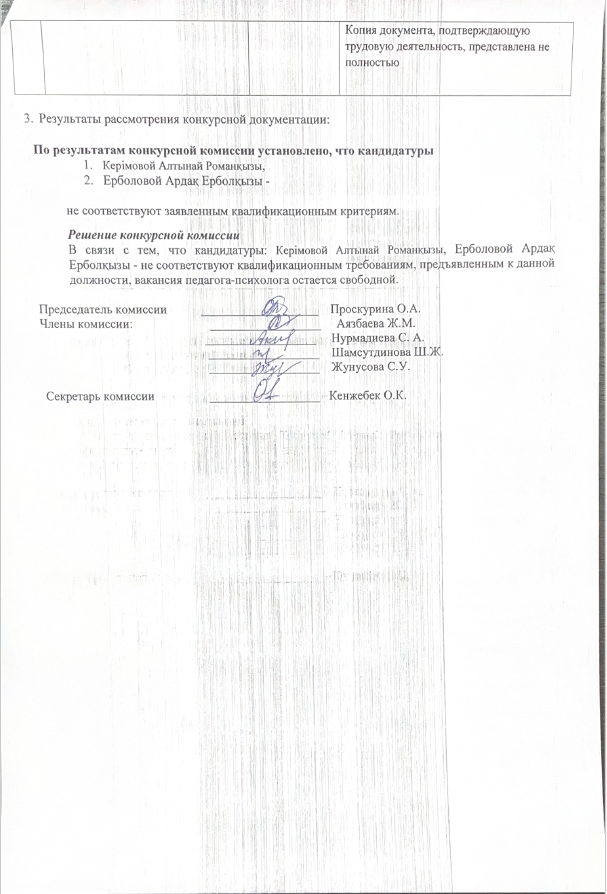 Вакантные должность:    Педагог- психолог  двуязычный     – 1 ставка